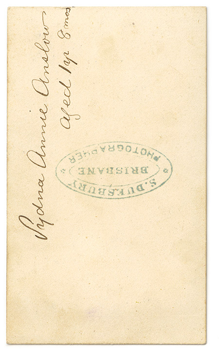 Sydna Annie Anslow was born 3 March 1868, so this photograph was taken around November 1869