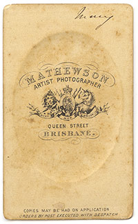 Mathewson’s dates and locations from Alan Davies’ and Peter Stanbury’s book The mechanical eye in Australia: photography 1841-1900: