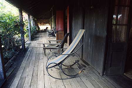 The wrought iron framed chair in the foreground, as Jim Archer told us, had come from the Rockhampton Club. Not, he pointed out, from the present club (founded in the 1880s) but from an earlier one that went broke and had to sell off its furniture. |