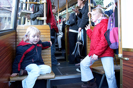 Sally and Lucy riding in a Wellington cable car. (See my review of the cablecar museum).